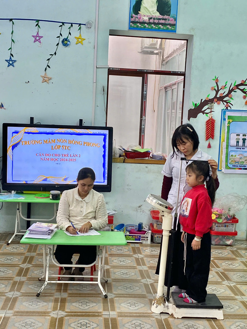 Trường mầm non Hồng Phong tổ chức cân đo theo dõi sức khoẻ định kì lần 2 năm học 2024 – 2025
